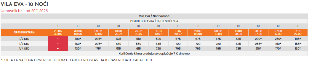 Prodaja u svojstvu subagenta – Cenovnik Nea Vrasna Eva Leto 2026